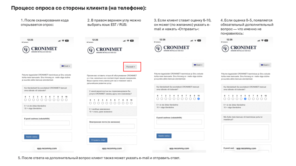 - Отсканируйте код своим телефоном, выберите подходящий язык (EST/RUS) и поставьте оценку.