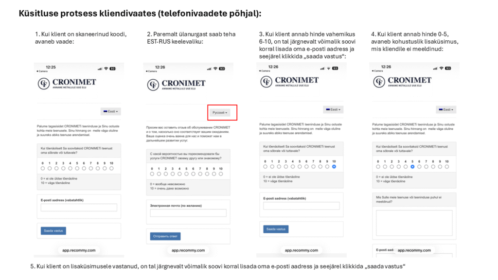 - Meie klienditeenindajate juures on nähtaval QR-koodiga kleebis kirjaga „Palun hinda meie teenindust!“